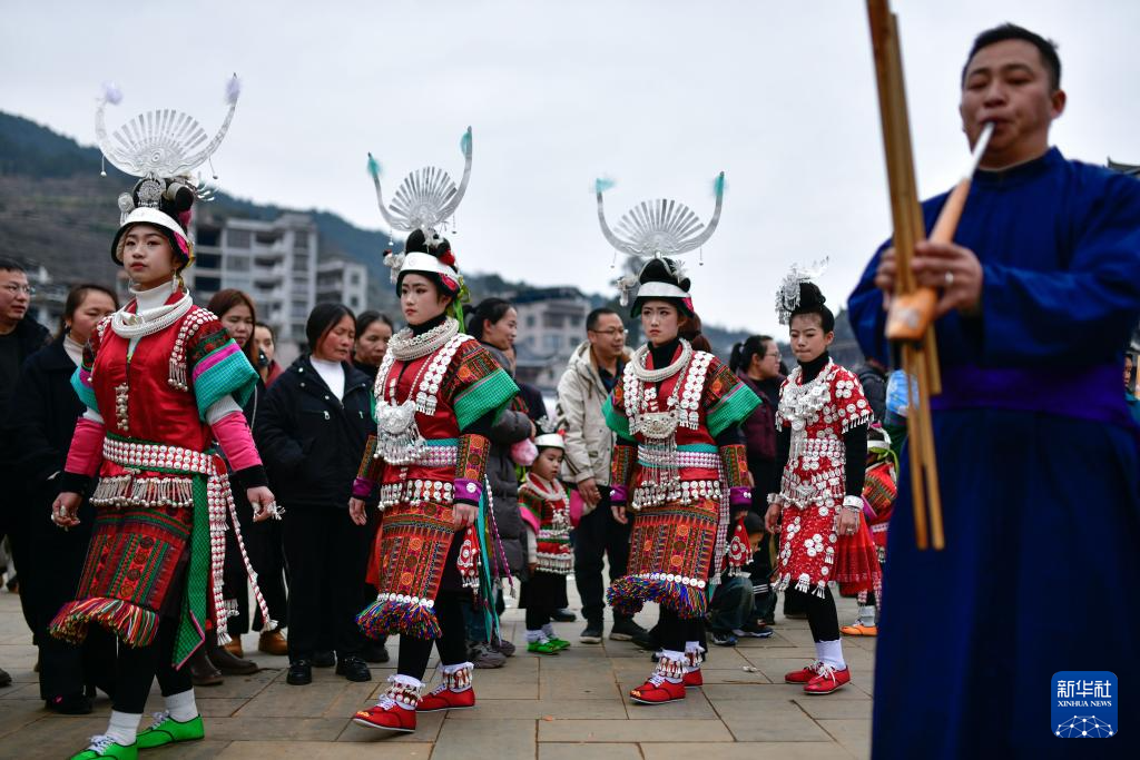 这是2月16日拍摄的贵州省凯里市舟溪镇“甘囊香”芦笙节活动现场。