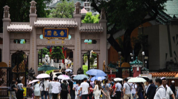 7月16日,参观者在汉魏洛阳故城遗址博物馆观看展品陶百花灯。