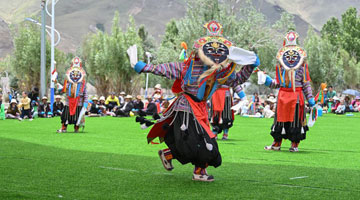 7月20日,在吉尔吉斯斯坦乔尔蓬阿塔,吉尔吉斯斯坦艺术家在第四届伊塞克湖国际音乐艺术节上表演。