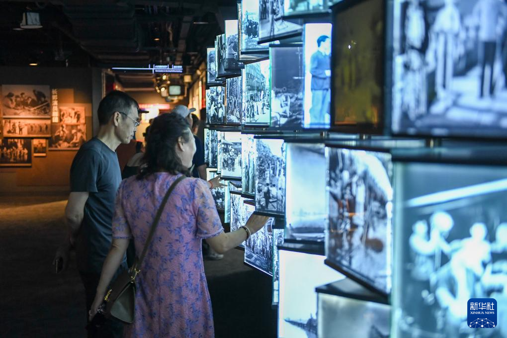 8月7日,游客在长影旧址博物馆观看电影歌舞剧《白毛女》。