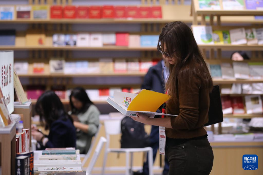 10月15日,读者在德国法兰克福书展中国联合展台翻阅图书。