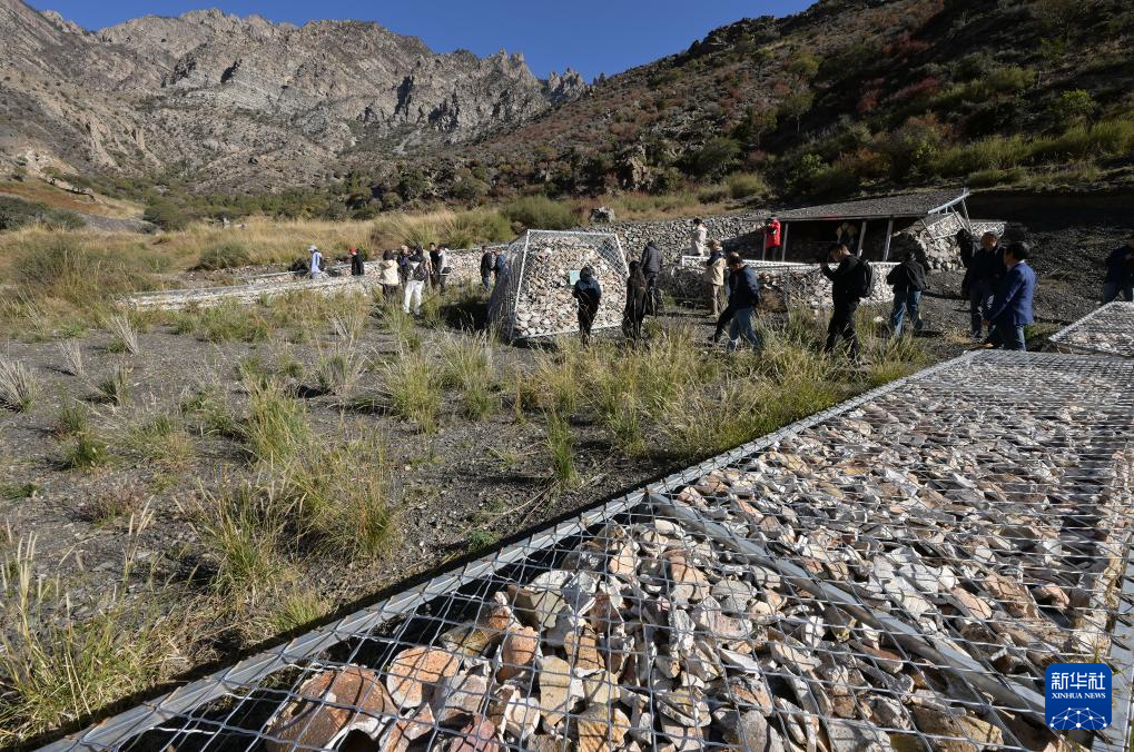 为更好保护和展示苏峪口瓷窑遗址,考古队工作人员使用牛毛毡和发掘出土的匣钵残片以及铁丝网将2021-2023年度发掘区遗迹进行了回填保护并原址展示(10月13日摄)。