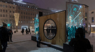 主持人在甘肃省群众文艺展演展播活动首场演出中和机器人互动(1月7日摄)。