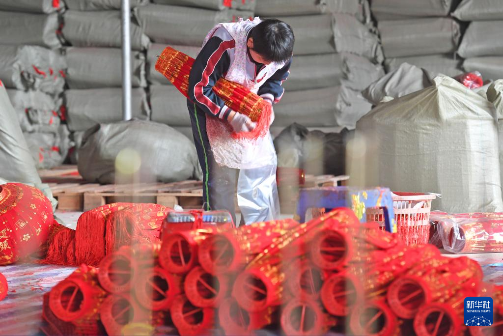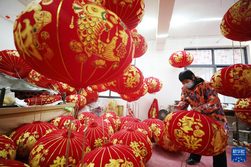 春节临近,大红灯笼迎来产销旺季,工人们忙着赶制各式灯笼,供应各地节日市场。