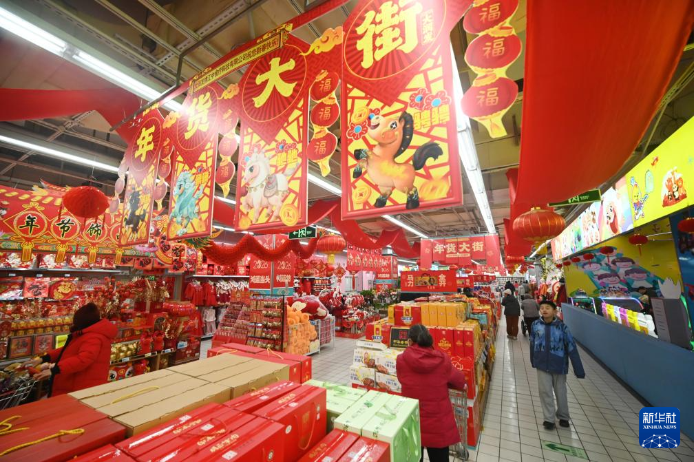 1月25日,市民在河南省开封市一家商场内选购年货。