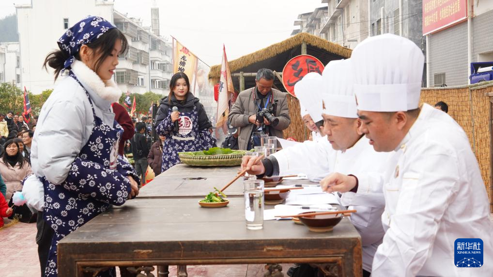2月4日,贵州省铜仁市石阡县举办“乡厨”大赛,十余支村级参赛队伍进行了厨艺大比拼,现场展示本土特色菜品、传承民间烹饪技艺。活动现场还进行了多项非遗巡演,开设了农特产品和文创产品展销点。