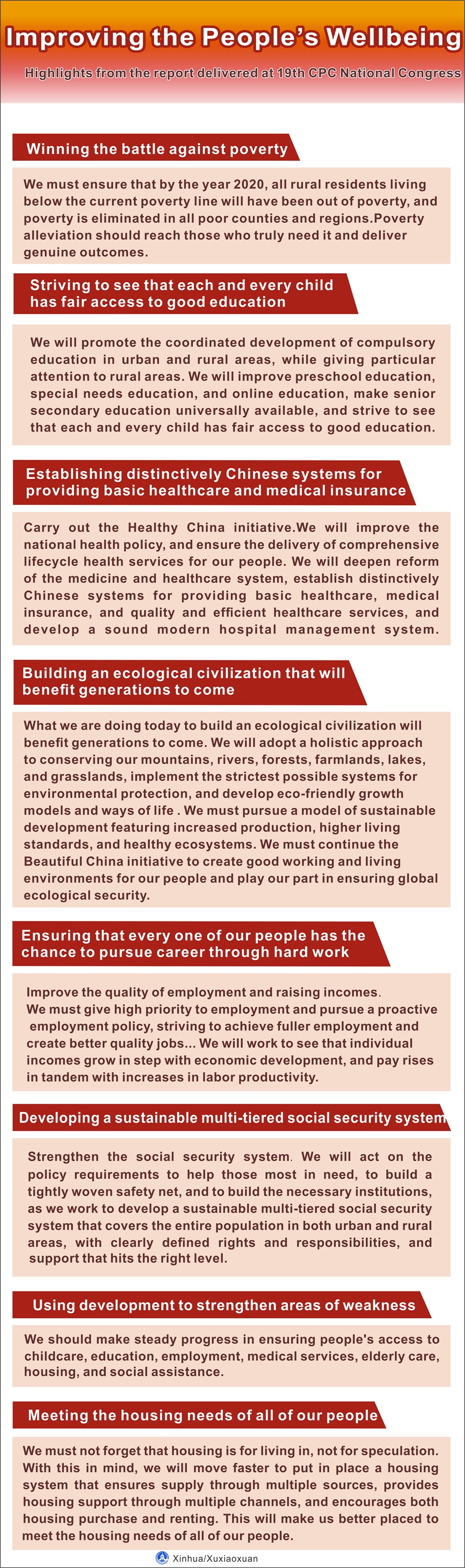 Graphics shows the highlights on improving the people's wellbeing from the report delivered at the opening session of the 19th National Congress of the Communist Party of China (CPC).