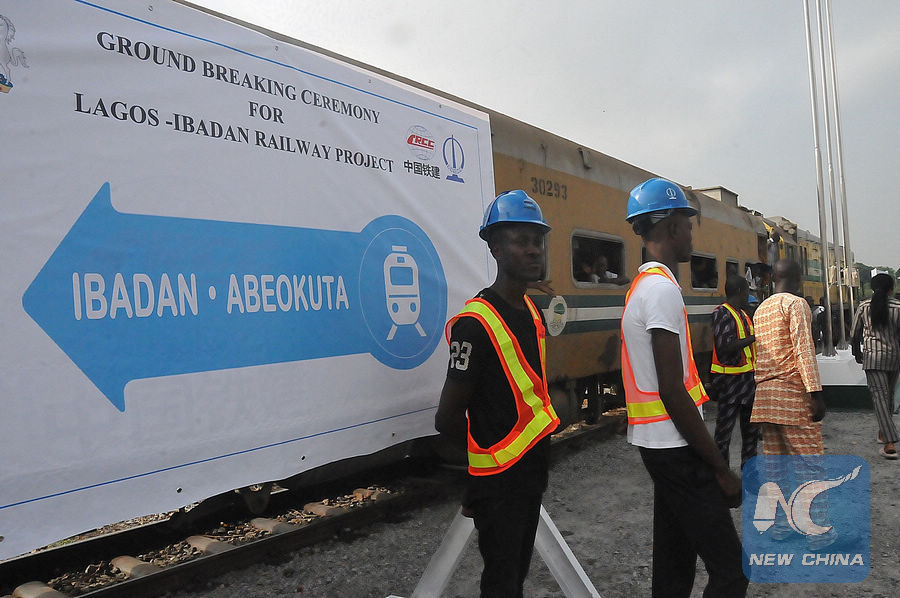 Photo taken on March 7, 2017 shows the scene of the ground breaking ceremony for Lagos-Ibadan railway project in Lagos, Nigeria. The new standard gauge railway project was awarded by the Nigerian government to China Civil Engineering Construction Corporation. (Xinhua/Jiang Xintong)