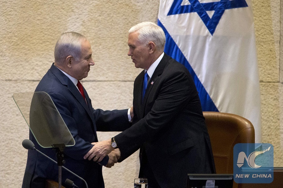 JERUSALEM, Jan. 22 (Xinhua) -- U.S. Vice President Mike Pence addressed the Knesset, Israel's parliament, on Monday, giving a strong pro-Israeli speech, accusing Iran of supporting "terrorist groups on Israel's doorsteps."