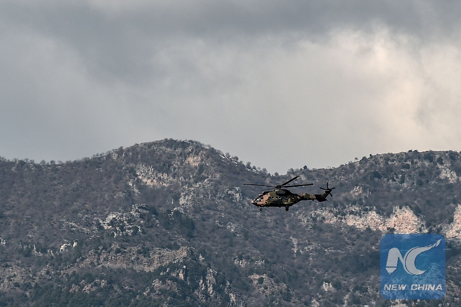 DAMASCUS, Feb. 10 (Xinhua) -- The Kurdish fighters shot down a Turkish military helicopter in the Kurdish-controlled Afrin enclave in northern Syria on Saturday, Kurdish activists said.