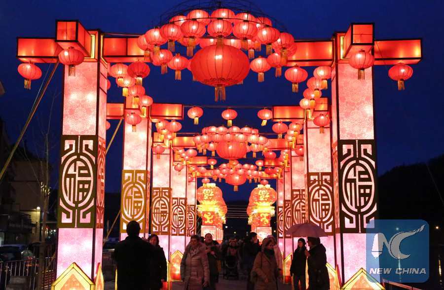 Photo taken on March 9, 2018 shows the Chinese lanterns exhibition in Dinant in southern Belgium. (Xinhua/Wang Xiaojun)