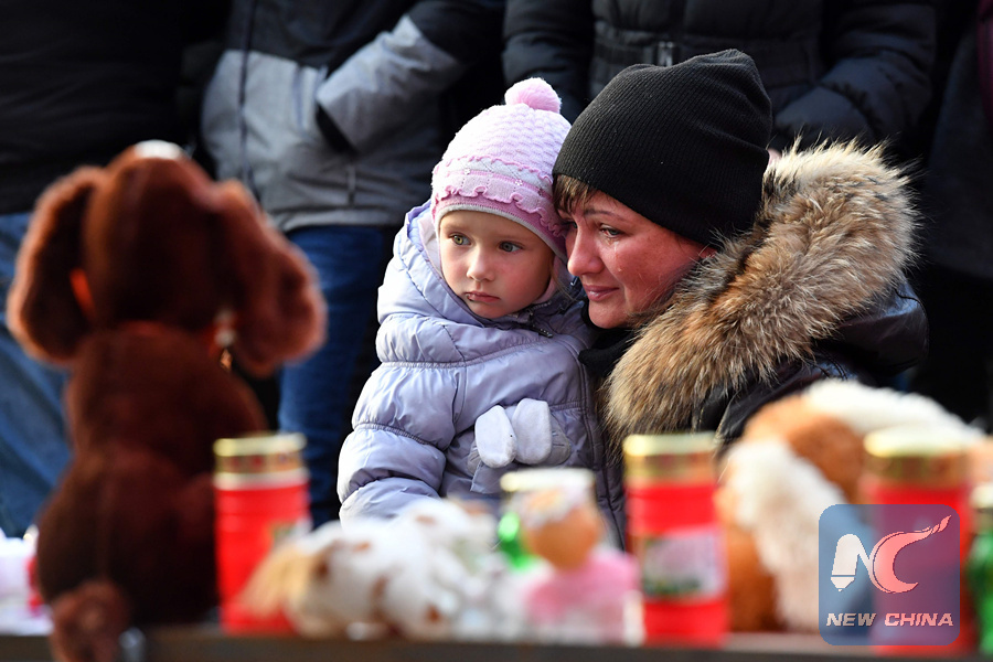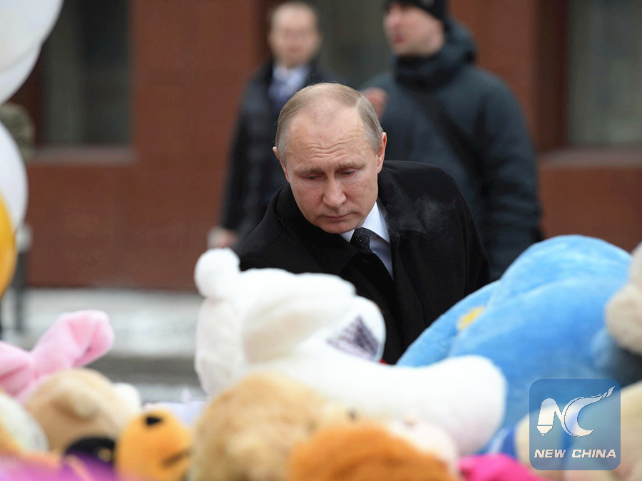 MOSCOW, March 27 (Xinhua) -- Russian President Vladimir Putin on Tuesday signed a decree declaring Wednesday a day of national mourning for the victims of a major fire in a mall in the Siberian city of Kemerovo, which killed at least 64 people.