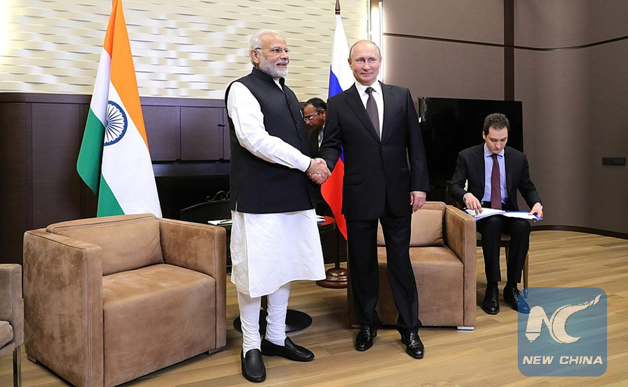 MOSCOW, May 21 (Xinhua) -- Russian President Vladimir Putin and visiting Indian Prime Minister Narendra Modi decided to step up economic and energy cooperation on Monday during the talks in the Black Sea resort of Sochi, the Foreign Ministry said.