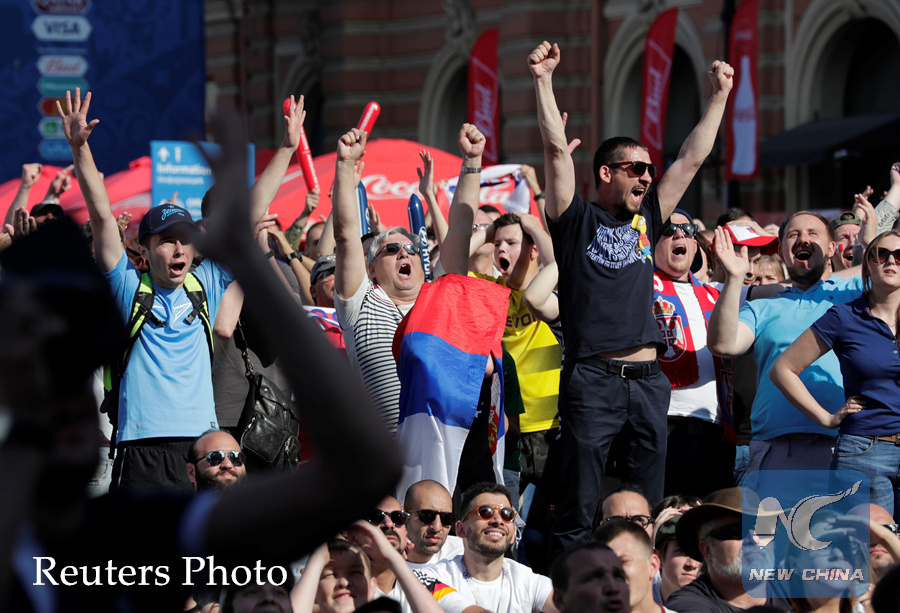 Serbia's fans cheer at the FIFA World Cup Fan Fest in Saint Petersburg, Russia on June 17, 2018. (REUTERS PHOTO)