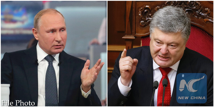 A combination of file photos show Russian President Vladimir Putin (L) and his Ukrainian counterpart Petro Poroshenko.