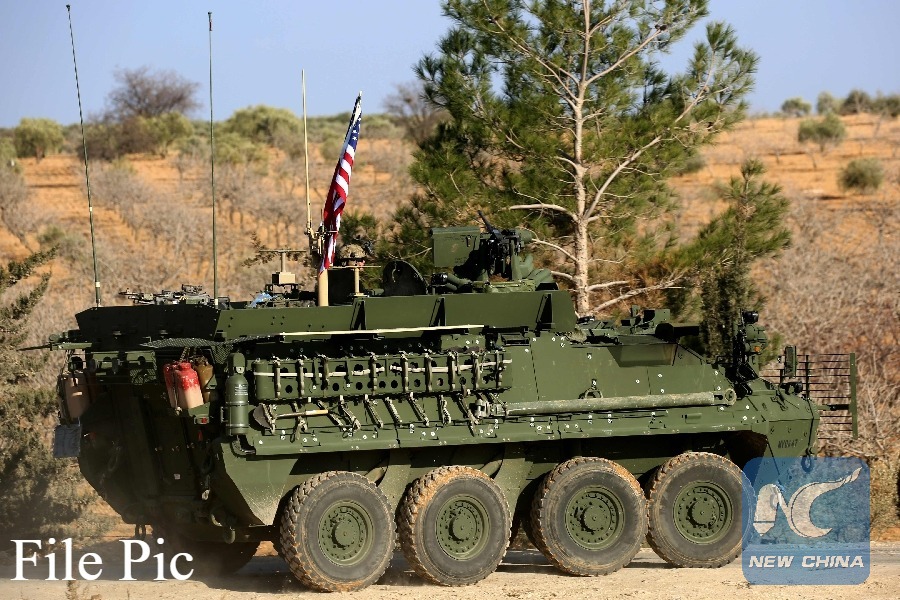 A convoy of U.S. forces armored vehicles drives near the village of Yalanli, on the western outskirts of the northern Syrian city of Manbij, on March 5, 2017. (AFP File Photo)