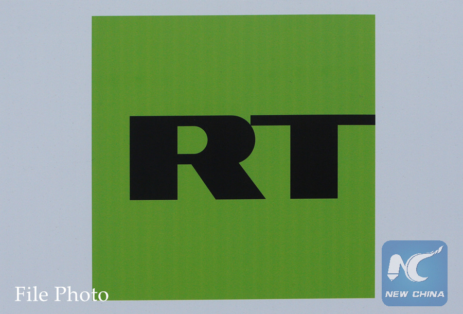 The logo of Russian television network Russia Today (RT) is seen on a board at the St. Petersburg International Economic Forum 2017 in St. Petersburg, Russia, June 1, 2017. (REUTERS PHOTO)