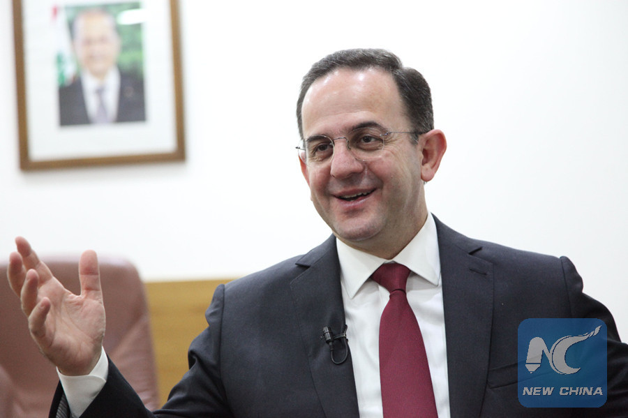 Lebanese Tourism Minister Avedis Guidanian receives exclusive interview from Xinhua in his office in Beirut, capital of Lebanon, on Feburary 20, 2019. (Xinhua photo)