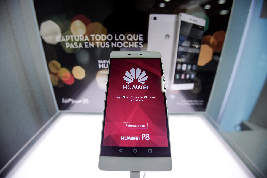 A mobile phone displayed at Chinese multinational Huawei, in Bogota City, Colombia. (Xinhua/Jhon Paz)