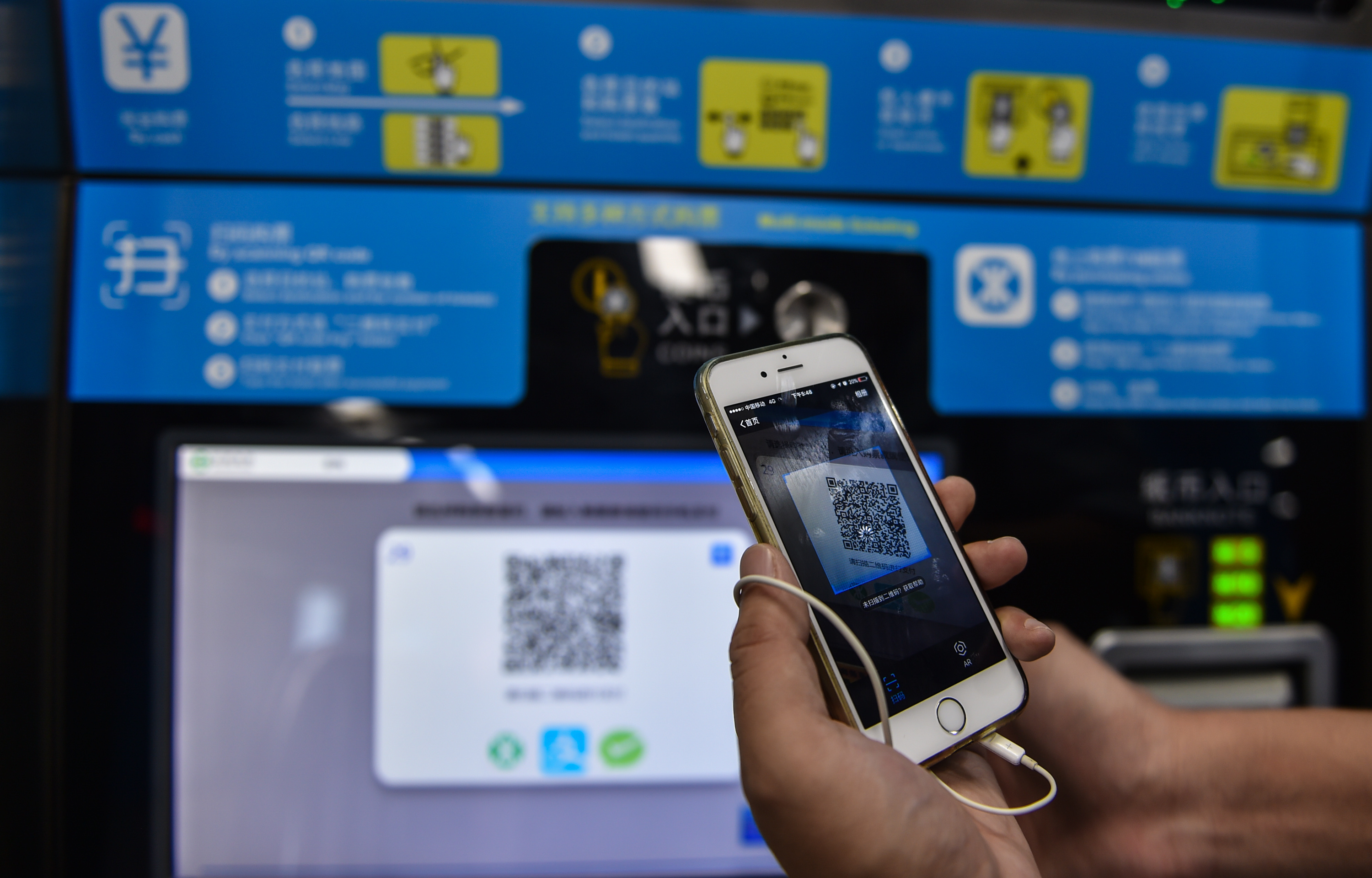 A passenger scans QR code to buy ticket at a station of subway Line 9 in Shenzhen, south China, Nov. 20, 2017. (Xinhua/Mao Siqian)