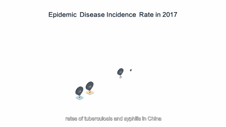 In 2017, rates of tuberculosis and syphilis in China was 0.061 percent and 0.034 percent respectively compared with 0.134 percent and 1 percent worldwide, which is lower than the global average.