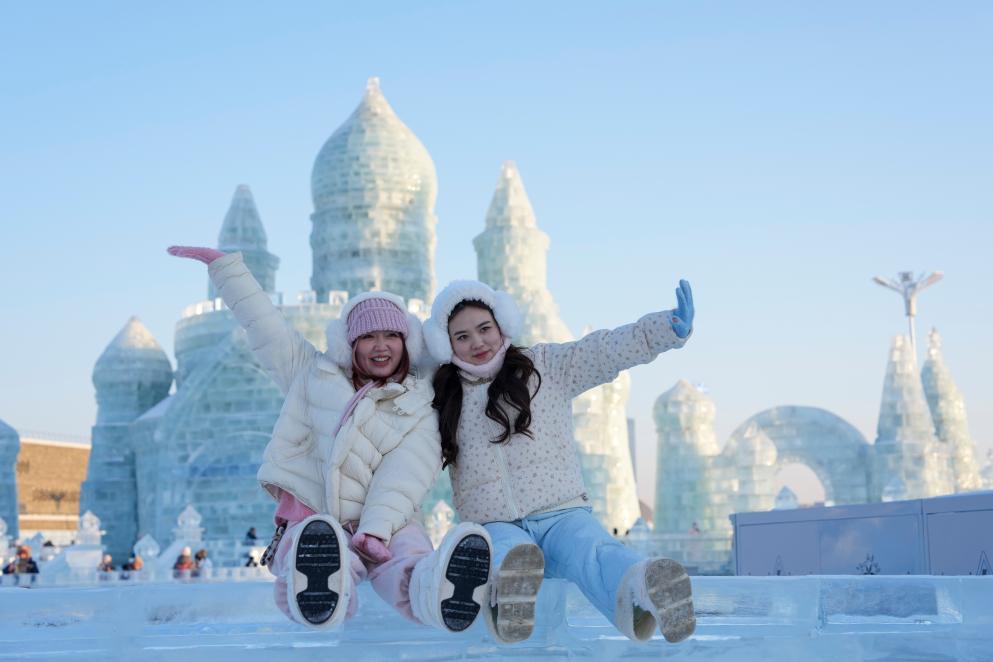 Tourists pose for photos at the Harbin Ice-Snow World in Harbin, northeast China's Heilongjiang Province, Jan. 5, 2026. (Xinhua/Wang Jianwei) Tourists have fun at the Harbin Ice-Snow World in Harbin, northeast China's Heilongjiang Province, Jan. 5, 2026. (Xinhua/Wang Jianwei)