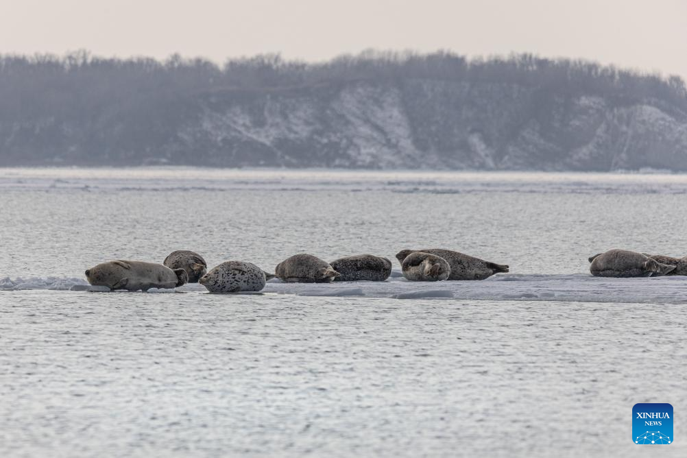 Seals are pictured on the ice in Vladivostok, a city in the Russian Far East, Jan. 7, 2026. (Photo by Andrey Matveenko/Xinhua)