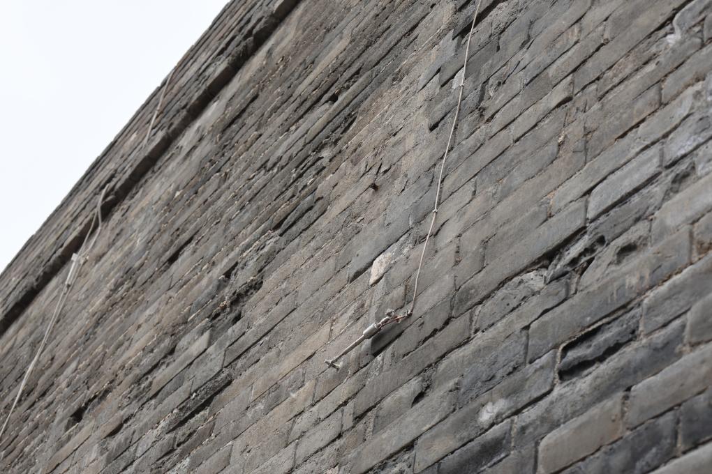 This photo taken on Sept. 10, 2025 shows crack monitors installed on the Xi'an City Wall in Xi'an, northwest China's Shaanxi Province. (Xinhua/Zhu Weixi)