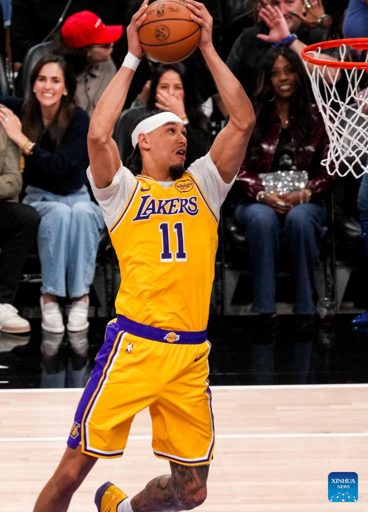 Los Angeles Lakers' Jaxson Hayes dunks during the 2025-2026 NBA regular season game between Sacramento Kings and Los Angeles Lakers in Sacramento, the United States, on Jan. 12, 2026. (Photo by Sun Yuxuan/Xinhua)