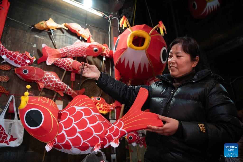 Nowadays, apart from parades with fish-shaped lanterns, local people have made efforts on developing new business forms related to the fish-shaped lantern including tourism and cultural and creative products. (Xinhua/Zhang Duan)
