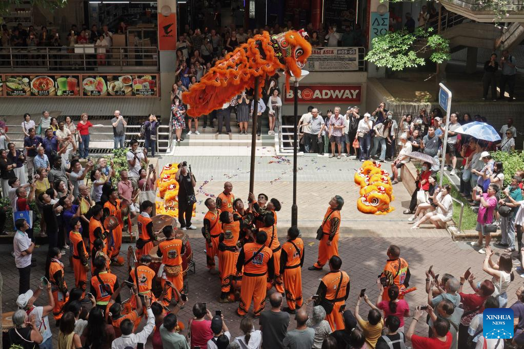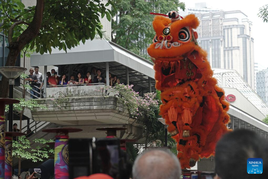 A lion dance is staged in celebration of the Lantern Festival in Singapore, March 3, 2026. (Photo by Then Chih Wey/Xinhua)