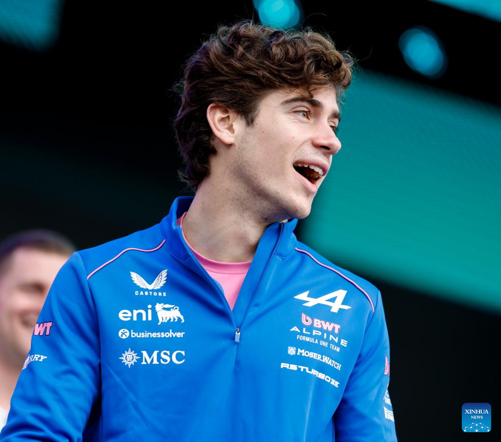 Alpine's Franco Colapinto of Argentina reacts during the fan forum before the practice session of the Formula One Australia Grand Prix at Albert Park in Melbourne, Australia, March 6, 2026. (Xinhua/Ma Ping)