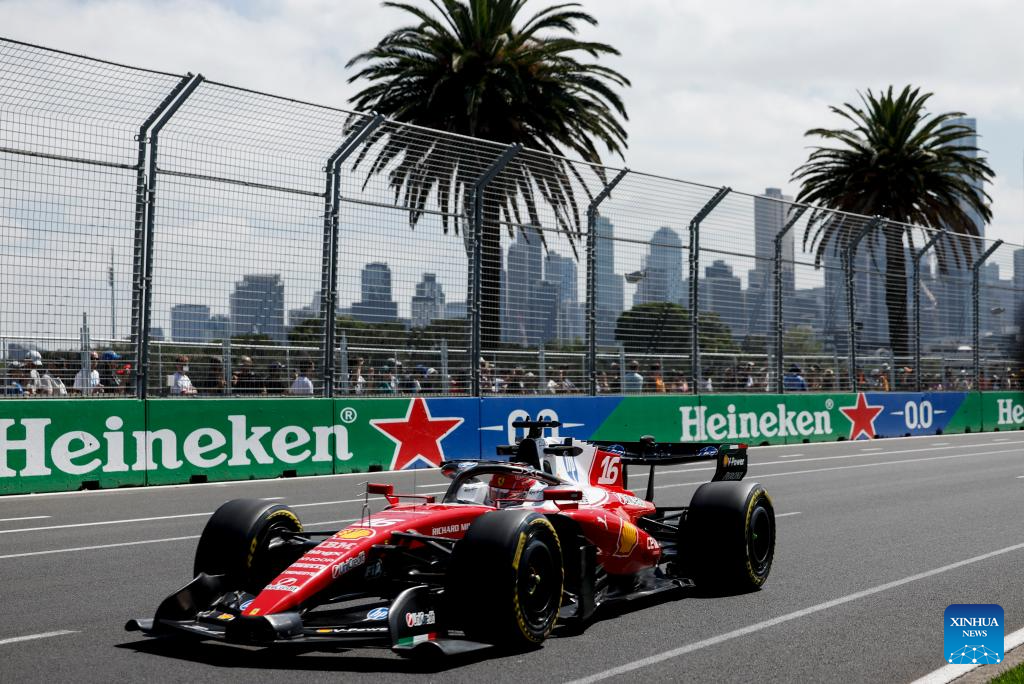 Ferrari's Charles Leclerc of Monaco drives during the practice session of the Formula One Australia Grand Prix at Albert Park in Melbourne, Australia, March 6, 2026. (Xinhua/Ma Ping)