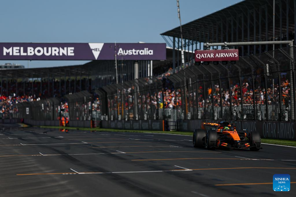 McLaren's Lando Norris of Britain drives into the garage during the practice session of the Formula One Australia Grand Prix at Albert Park in Melbourne, Australia, March 6, 2026. (Photo by Qian Jun/Xinhua)