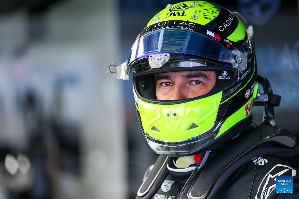 Cadillac's Sergio Perez of Mexico reacts during the practice session of the Formula One Australia Grand Prix at Albert Park in Melbourne, Australia, March 6, 2026. (Photo by Qian Jun/Xinhua)