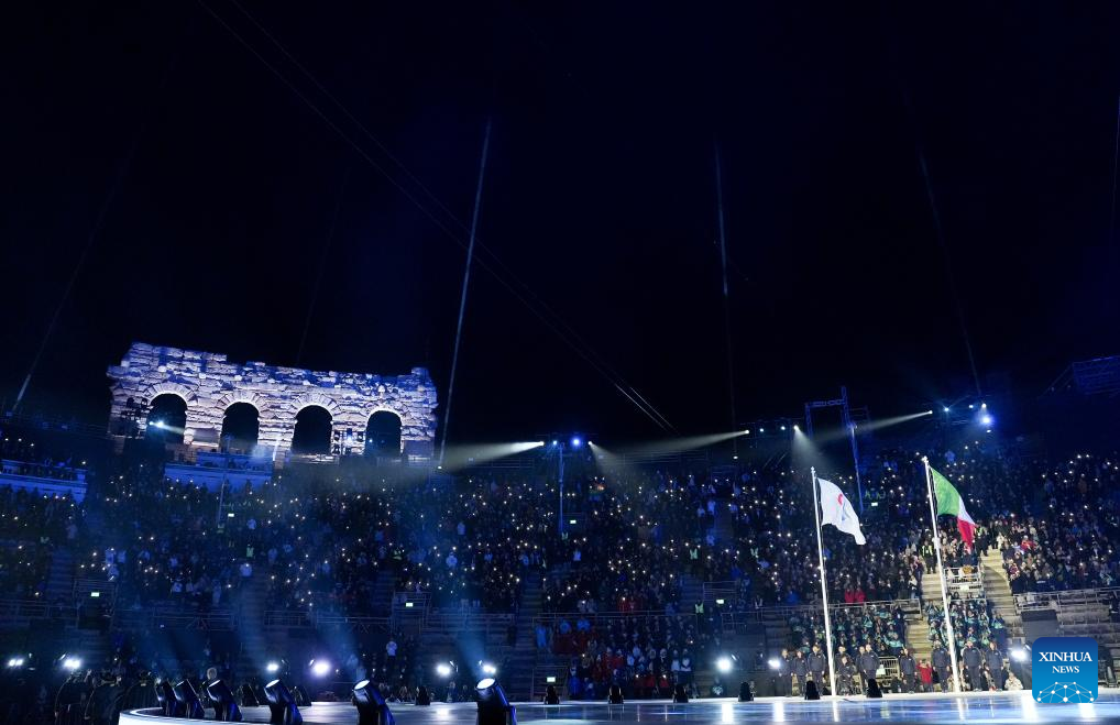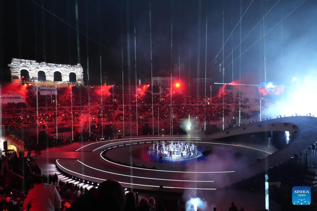 Themed "Life in Motion," the opening ceremony was held in the 2,000-year-old Verona Arena, an ancient Roman amphitheater and a UNESCO World Heritage Site. The event highlighted contemporary art, including video design, music and choreography.