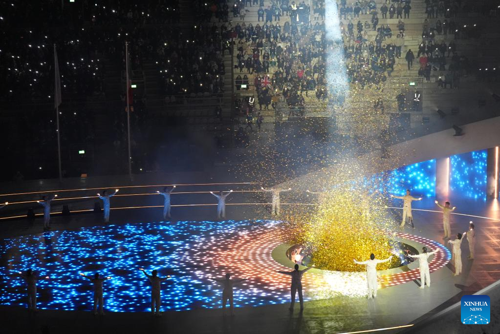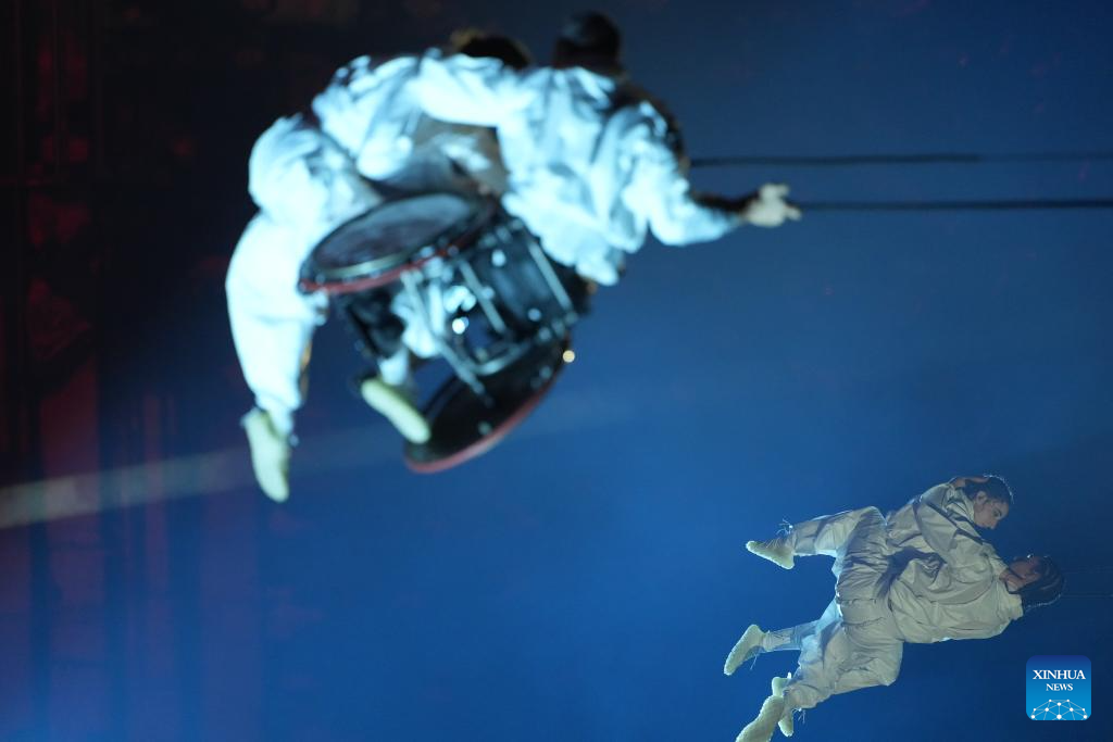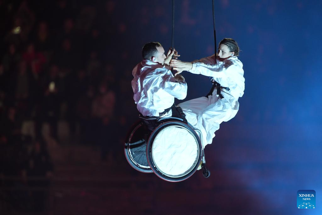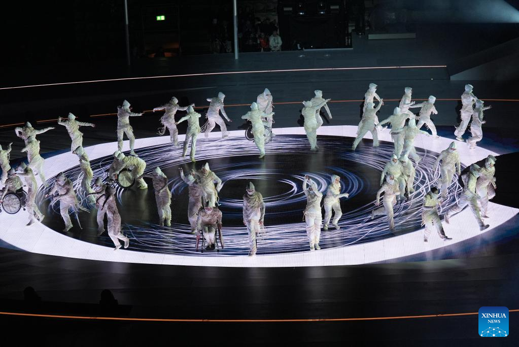 Actors perform during the opening ceremony of Milan-Cortina 2026 Paralympic Winter Games at Verona Olympic Arena in Verona, Italy, March 6, 2026. (Xinhua/Cai Yang)