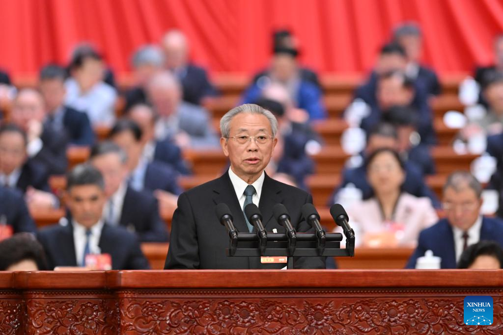 Zhou Qiang presides over the second plenary meeting of the fourth session of the 14th National Committee of the Chinese People's Political Consultative Conference (CPPCC) at the Great Hall of the People in Beijing, capital of China, March 7, 2026. (Xinhua/Huang Jingwen)