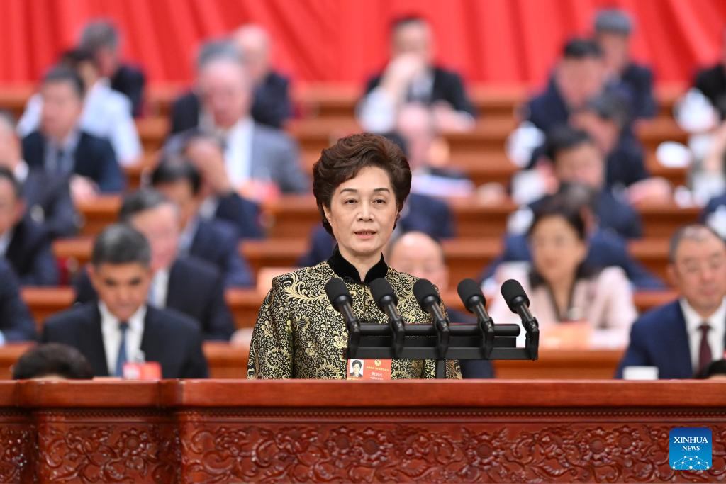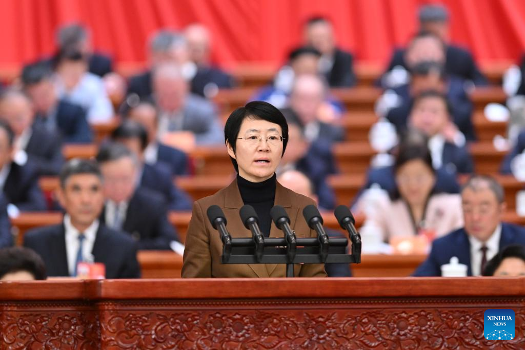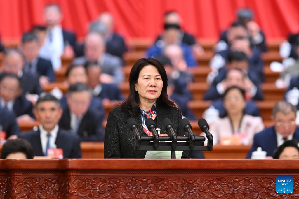 He Dan, a member of the 14th National Committee of the Chinese People's Political Consultative Conference (CPPCC), speaks at the second plenary meeting of the fourth session of the 14th CPPCC National Committee at the Great Hall of the People in Beijing, capital of China, March 7, 2026. (Xinhua/Yue Yuewei)