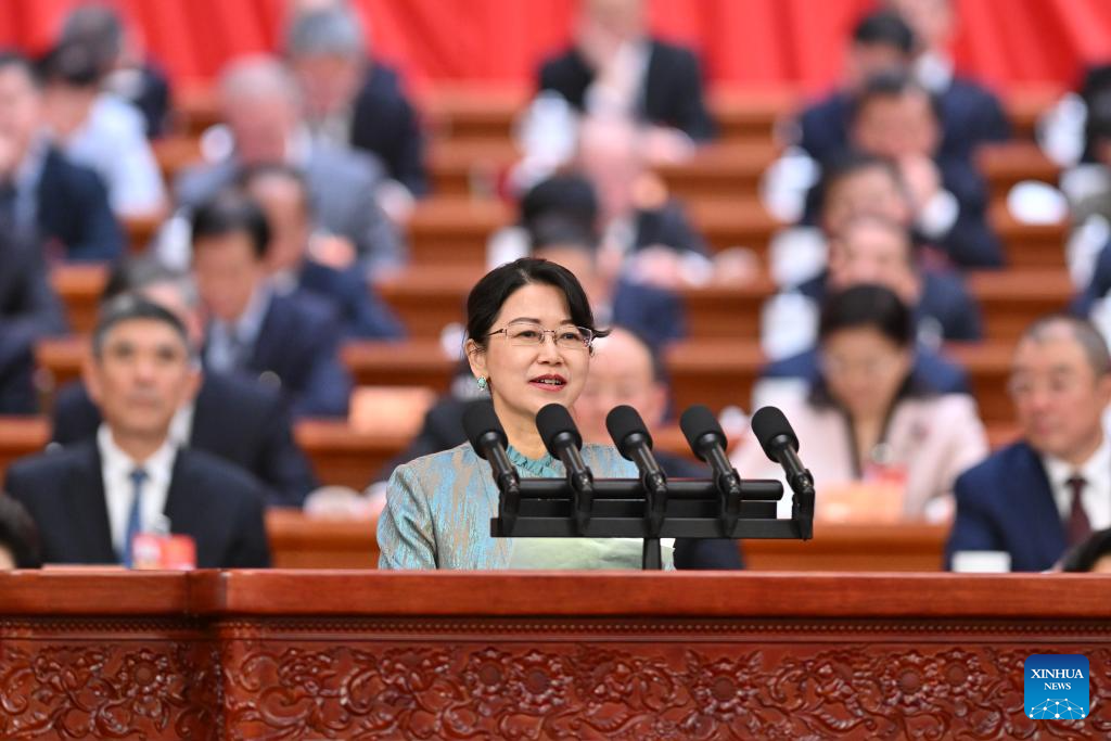 Li Rongcan, a member of the 14th National Committee of the Chinese People's Political Consultative Conference (CPPCC), speaks at the second plenary meeting of the fourth session of the 14th CPPCC National Committee at the Great Hall of the People in Beijing, capital of China, March 7, 2026. (Xinhua/Li Tao)