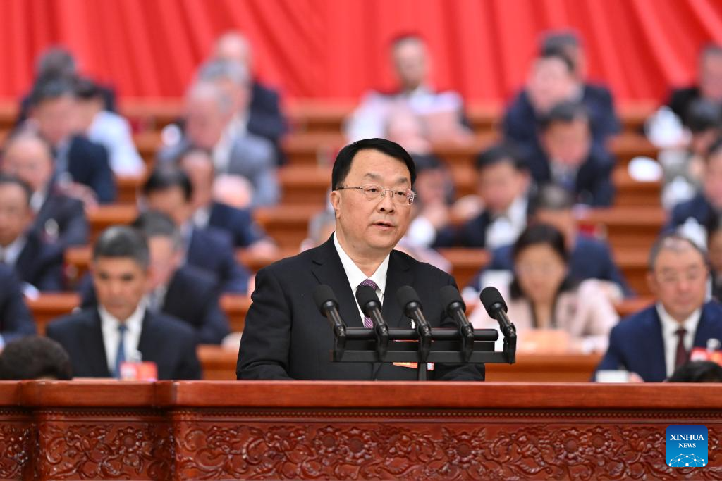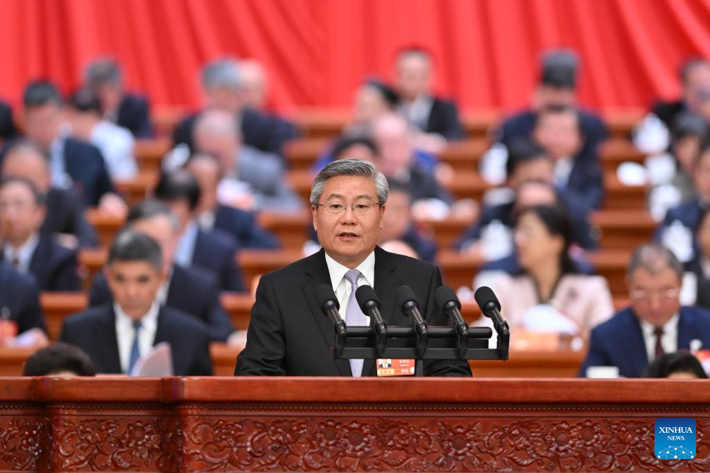 Mo Rong, a member of the 14th National Committee of the Chinese People's Political Consultative Conference (CPPCC), speaks at the second plenary meeting of the fourth session of the 14th CPPCC National Committee at the Great Hall of the People in Beijing, capital of China, March 7, 2026. (Xinhua/Yue Yuewei)