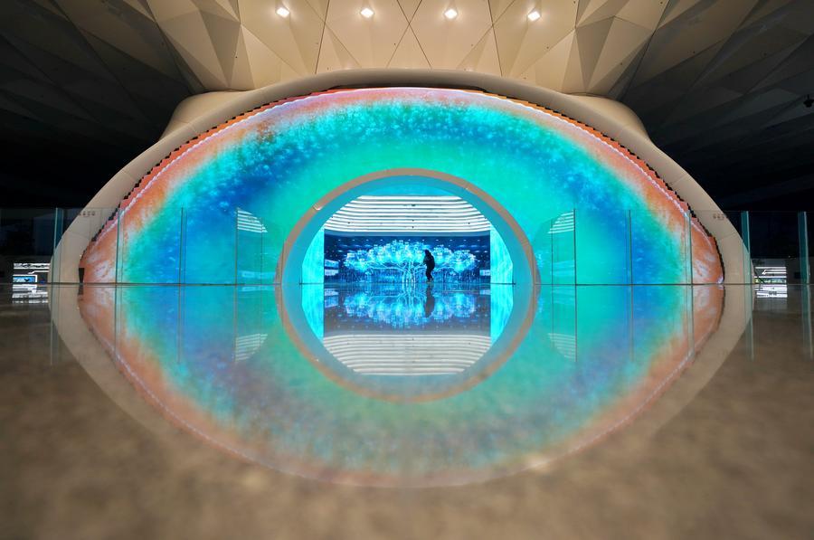 A man visits the Xiong'an Urban Computing Center in Xiong'an New Area, north China's Hebei Province, Feb. 26, 2025. (Xinhua/Mu Yu)