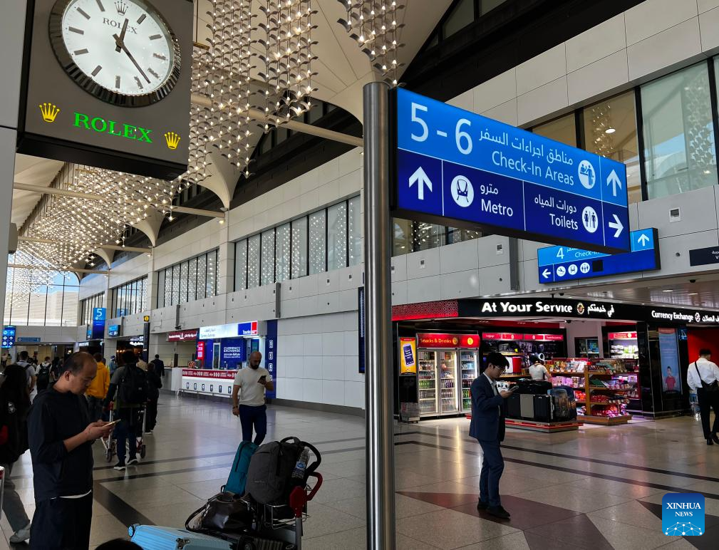 This photo taken on March 7, 2026 shows an interior view of Dubai International Airport in Dubai, the United Arab Emirates (UAE). Dubai-based carrier Emirates said on Saturday it has resumed flight operations at Dubai International Airport after a temporary suspension earlier in the day due to safety concerns. (Xinhua)