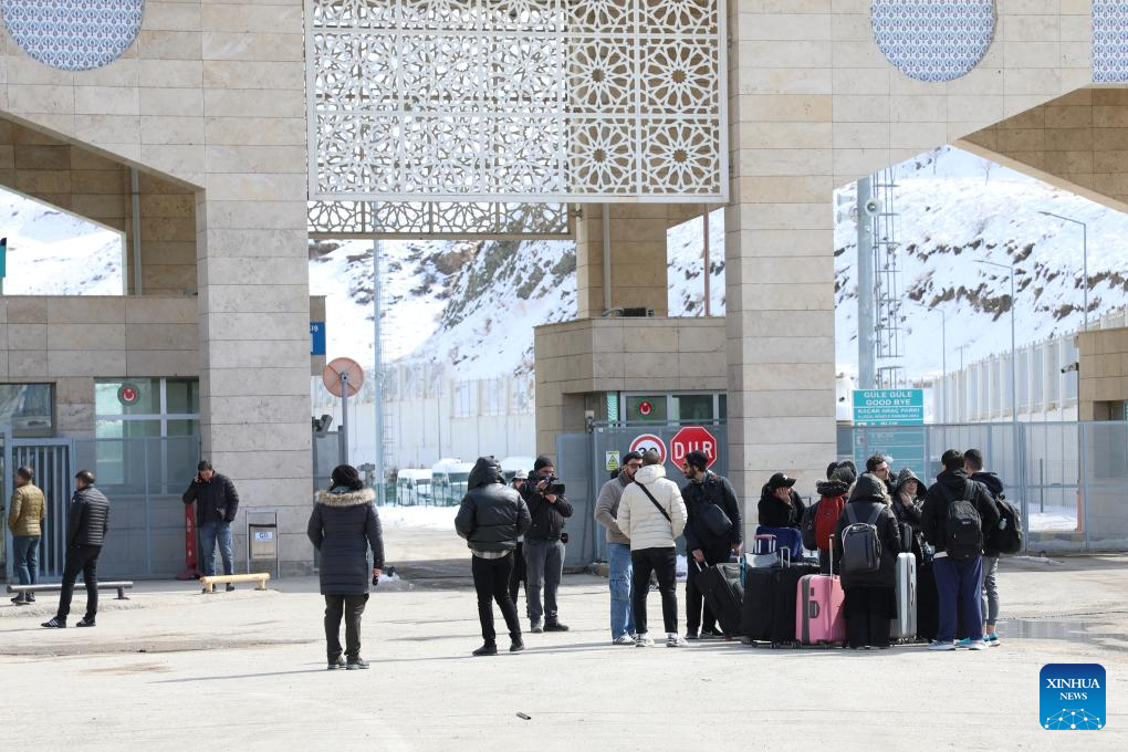 Foreigners including Iranians are seen to have entered Türkiye from Iran at the Kapikoy border gate in Van province, Türkiye, on March, 4, 2026. (Photo by Mustafa Kaya/Xinhua)