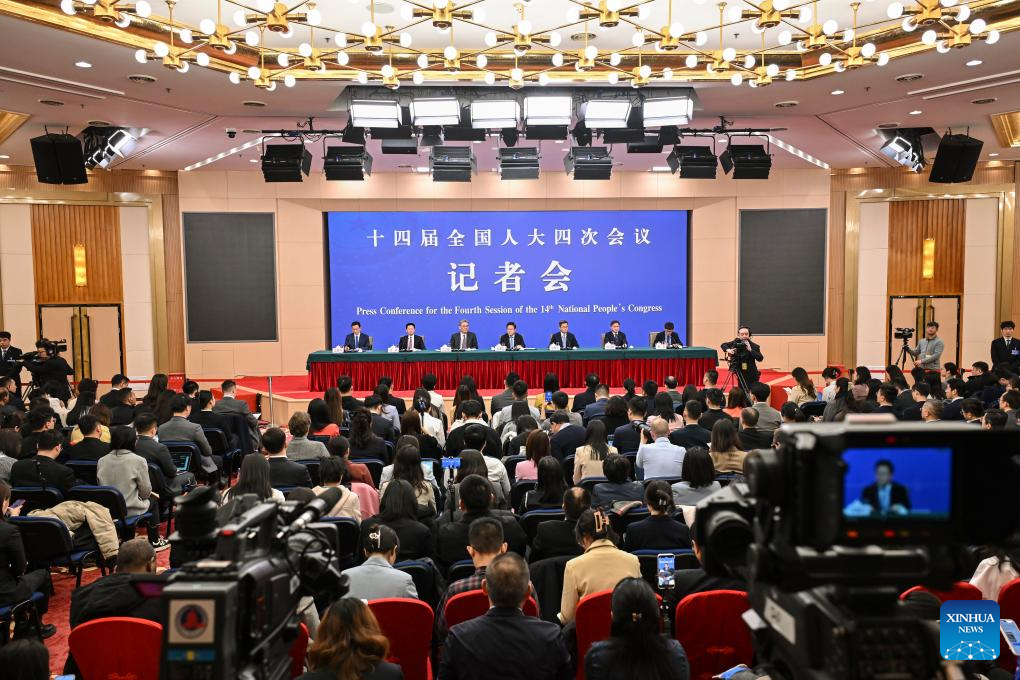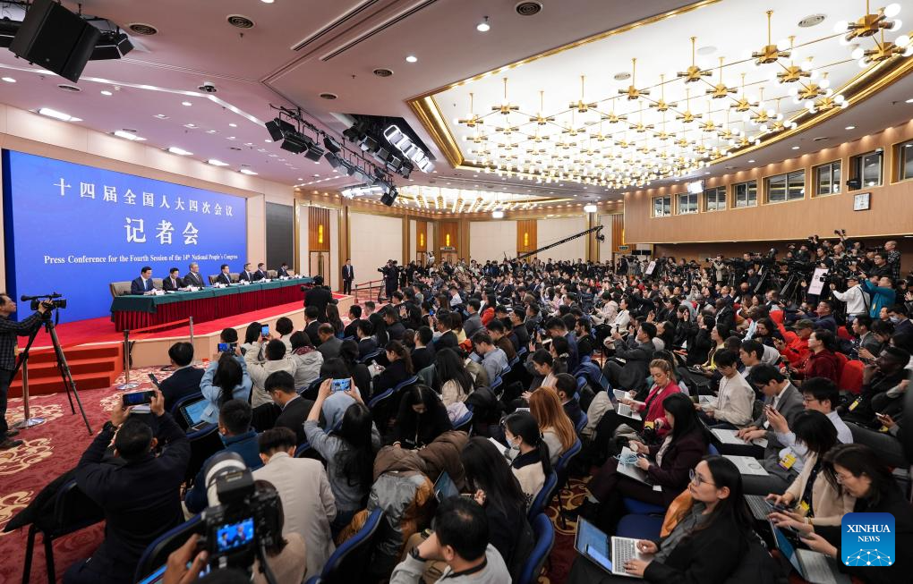 A press conference for the fourth session of the 14th National People's Congress (NPC) on economy is held in Beijing, capital of China, March 6, 2026. (Xinhua/Li Xin)
