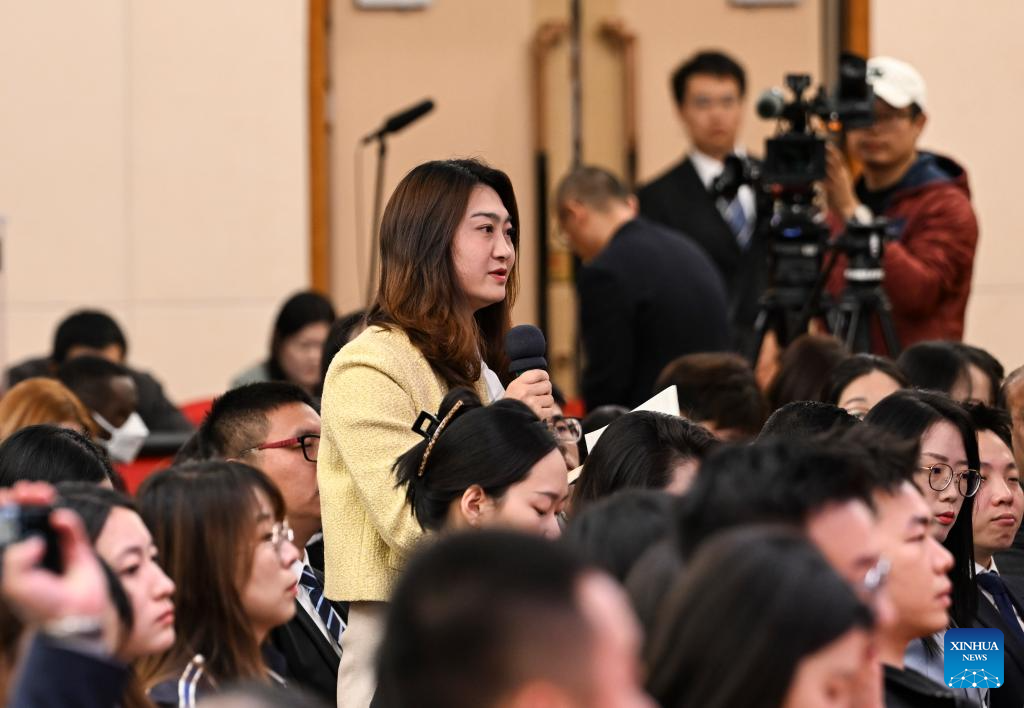 A journalist asks a question at a press conference for the fourth session of the 14th National People's Congress (NPC) on economy in Beijing, capital of China, March 6, 2026. (Xinhua/Wang Xi)