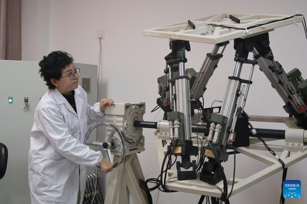 Guljaina Kazezkhan adjusts lab equipment at the Xinjiang Astronomical Observatory under the Chinese Academy of Sciences, in Urumqi, northwest China's Xinjiang Uygur Autonomous Region, Feb. 11, 2026. (Xinhua/Jia Zhao)