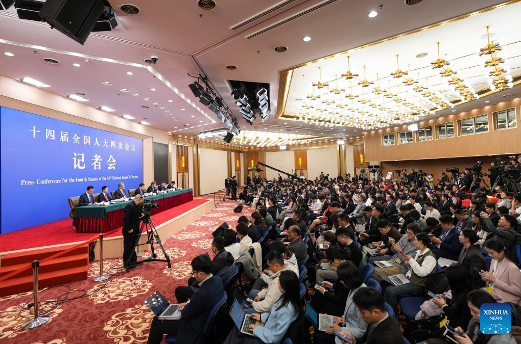 A press conference for the fourth session of the 14th National People's Congress (NPC) on economy is held in Beijing, capital of China, March 6, 2026. (Xinhua/Li Xin)