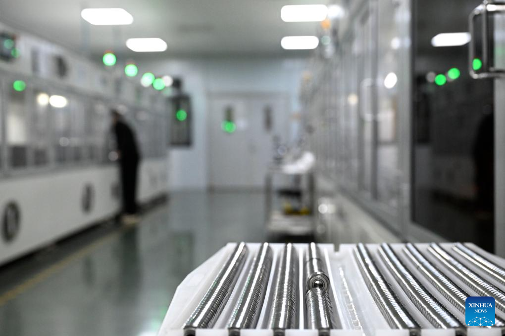 A staff member conducts sampling inspection to the bearing steel balls at an enterprise in a bearing industrial park in Lingbi County of Suzhou, east China's Anhui Province, March 6, 2026. Lingbi County has been promoting the clustered development of the entire industrial chain of bearings in recent years, gathering here over 80 enterprises related to the bearing industry, with an annual output value exceeding 5 billion yuan (about 724.15 million U.S. dollars) in 2025. (Xinhua/Huang Bohan)