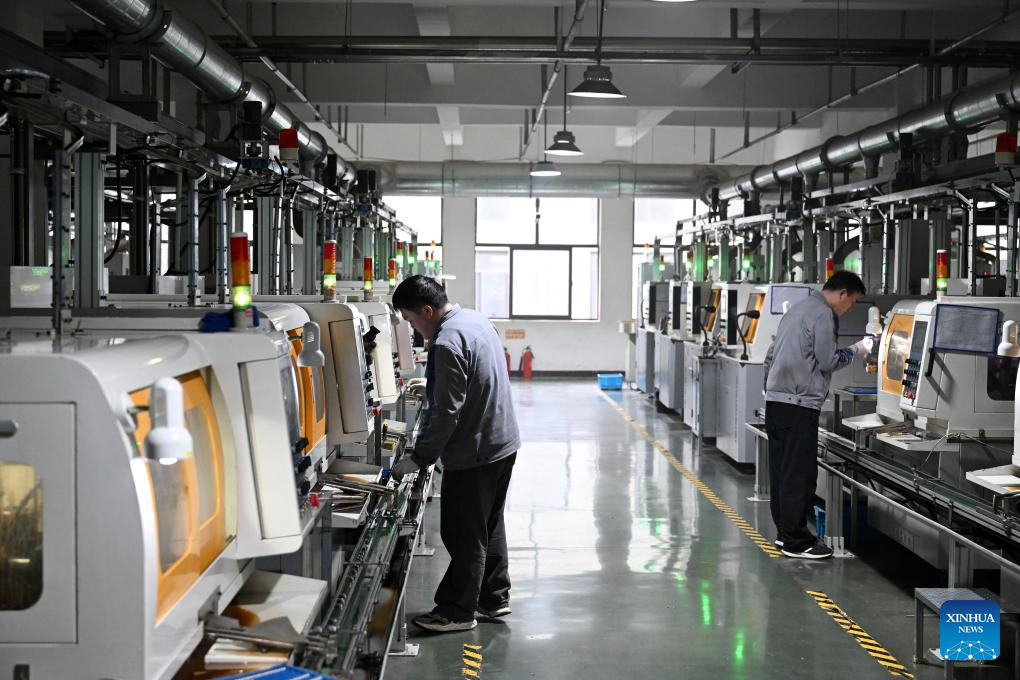 Staff members work at an enterprise in a bearing industrial park in Lingbi County of Suzhou, east China's Anhui Province, March 6, 2026. Lingbi County has been promoting the clustered development of the entire industrial chain of bearings in recent years, gathering here over 80 enterprises related to the bearing industry, with an annual output value exceeding 5 billion yuan (about 724.15 million U.S. dollars) in 2025. (Xinhua/Huang Bohan)